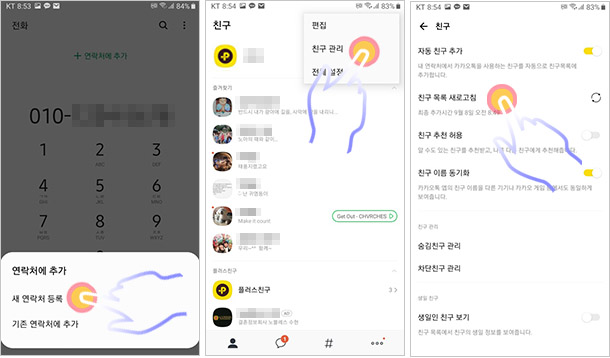 3. '친구목록 새로고침'을 클릭하여 카카오톡에 친구록 등록되게 합니다.