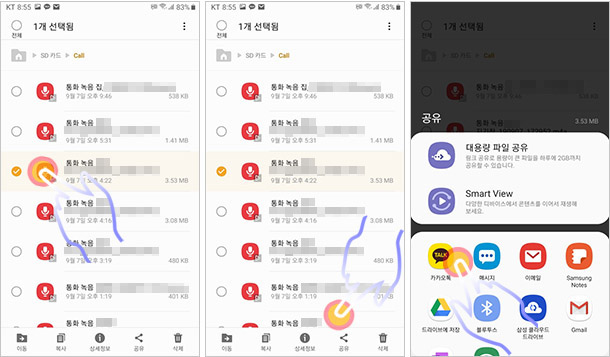 스마트폰에서 카카오톡을 이용한 녹취파일 전송(안드로이드v9 파이 기준)